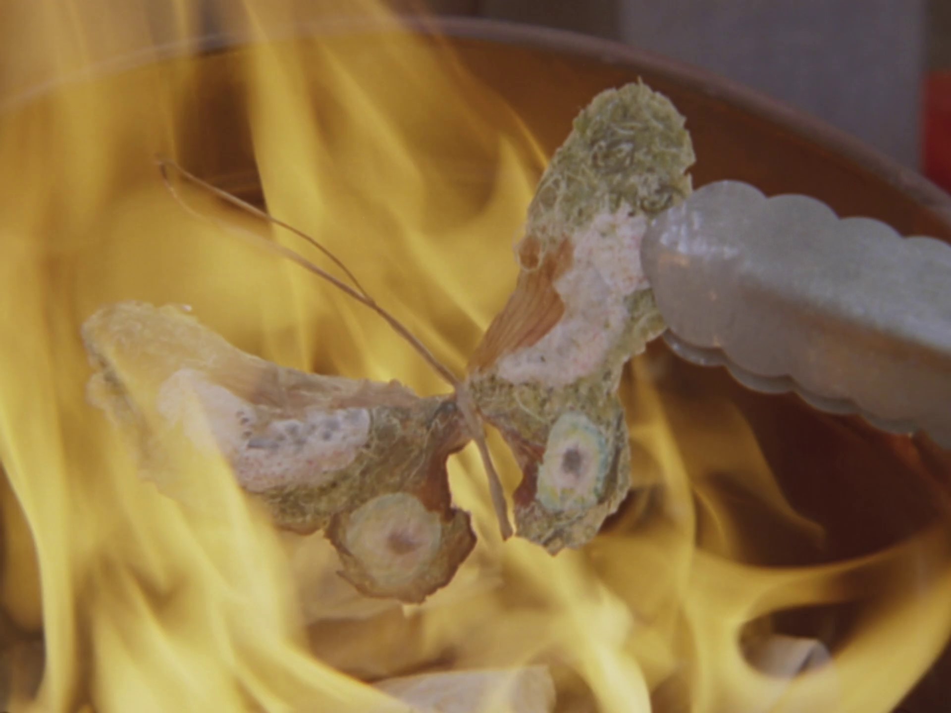 羽化 (literally: wings becoming) is a Chinese Taoist term with a double meaning: “to transform into a butterfly” and “to die.” In this short 16mm film, these ideas of transformation and death are connected to a narrative of urban development and displacement. Set in a guerrilla garden patch tended by Chinese immigrants abutting the FDR Highway in the Lower East Side of Manhattan, the film tracks the appearance and disappearance of a set of handmade paper butterflies. The paper butterflies are ritually set on fire, allowing them to cross the threshold into another world.